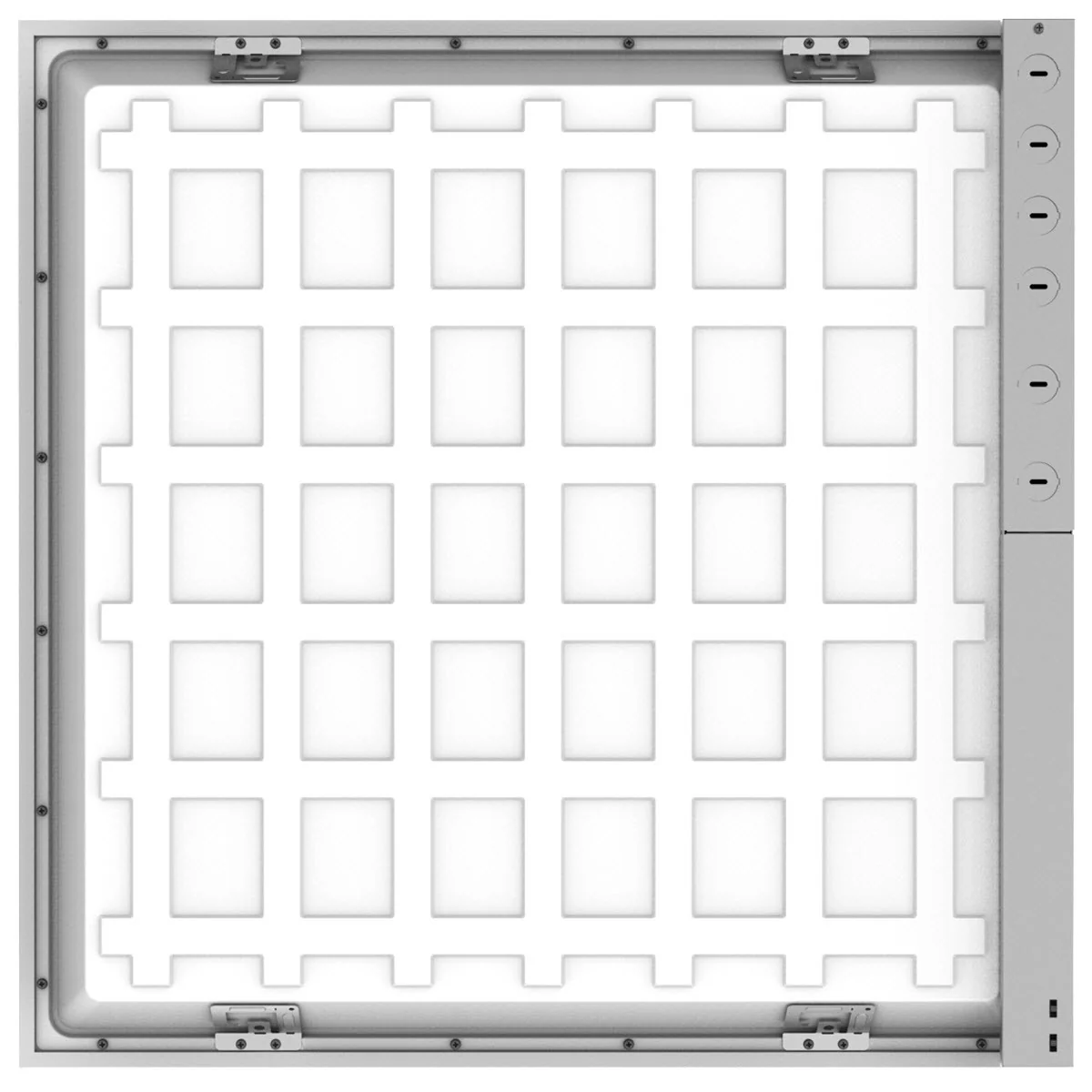Steel and Aluminum frame. PMMA lens material to prevent panel from yellowing. The entire fixture functions as a heat sink to keep the LEDs cooler to prolong the life of the light.