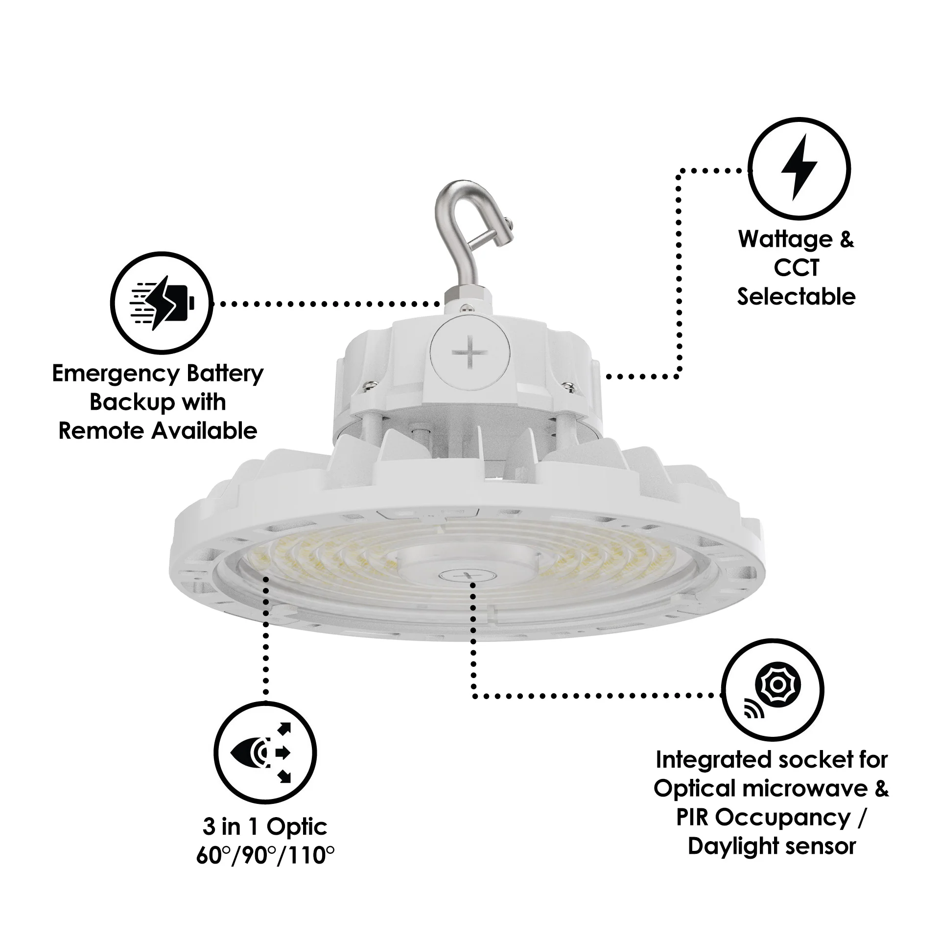 Aries G4 LED UFO High Bay, 24,000 Lumen Max, Wattage and CCT Selectable, White Finish, Comparable to 320-400 Watt HID Fixture, 120-277V